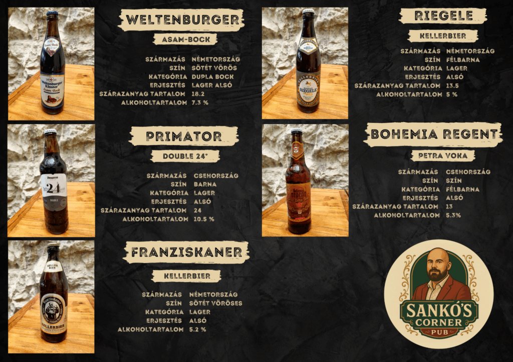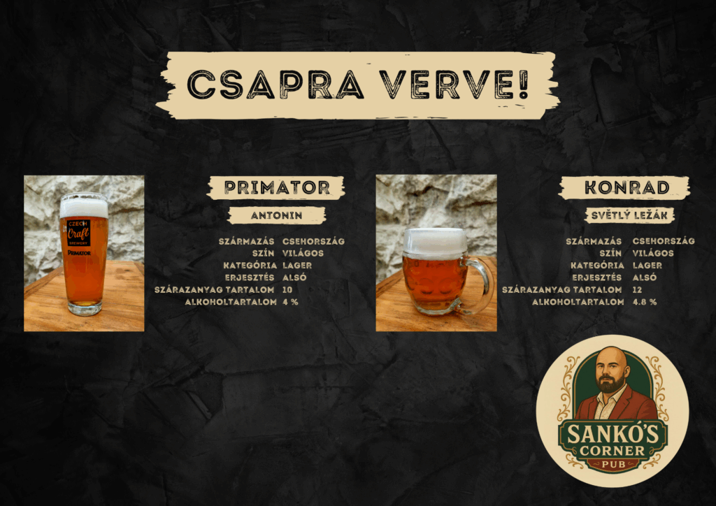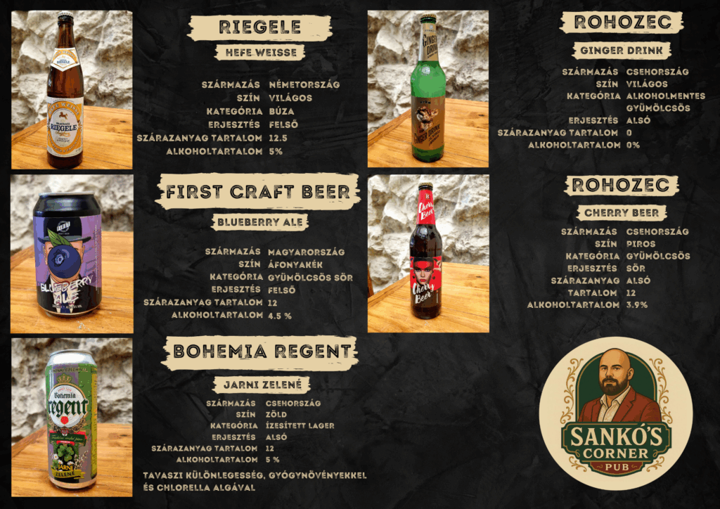 Sörkülönlegességek Csehországból, Németországból és Magyarországról, házias ételek és igazi baráti hangulat – ez a Sankó’s Corner, Győr kedvenc kocsmája.